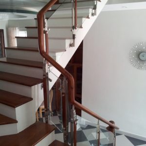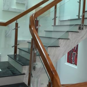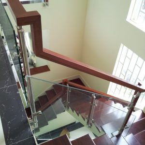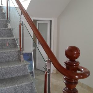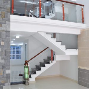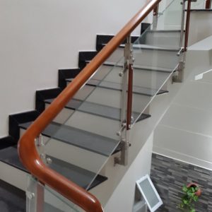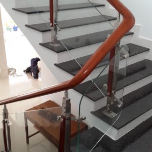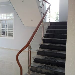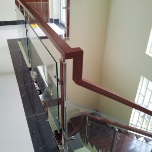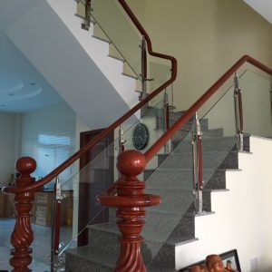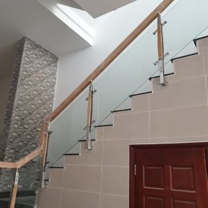 - Phần kính được sử dụng loại kính cường lực 10 – 12 ly có khả năng chịu va đập và tuổi thọ rất cao, được ngắt quảng theo các trụ, đem lại sự thông thoáng và đảm bảo an toàn cho phần cầu thang góp phần làm đẹp hơn cho ngôi nhà của bạn cũng như tăng thêm giá trị cho không gian.